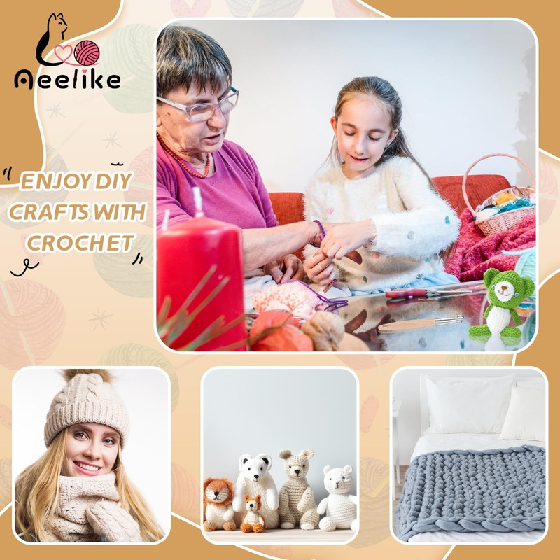 - [Long crochet hook ergonomic] The handles and metal parts are longer compared to other crochet hooks set. They glide through butter like a hot knife. Never get stuck. No squeaking. The thread does not fall off. Well made, lightweight and convenient to use. For those who have never used it before, it takes a little getting used to, but once you get used to it, you can't get rid of it.