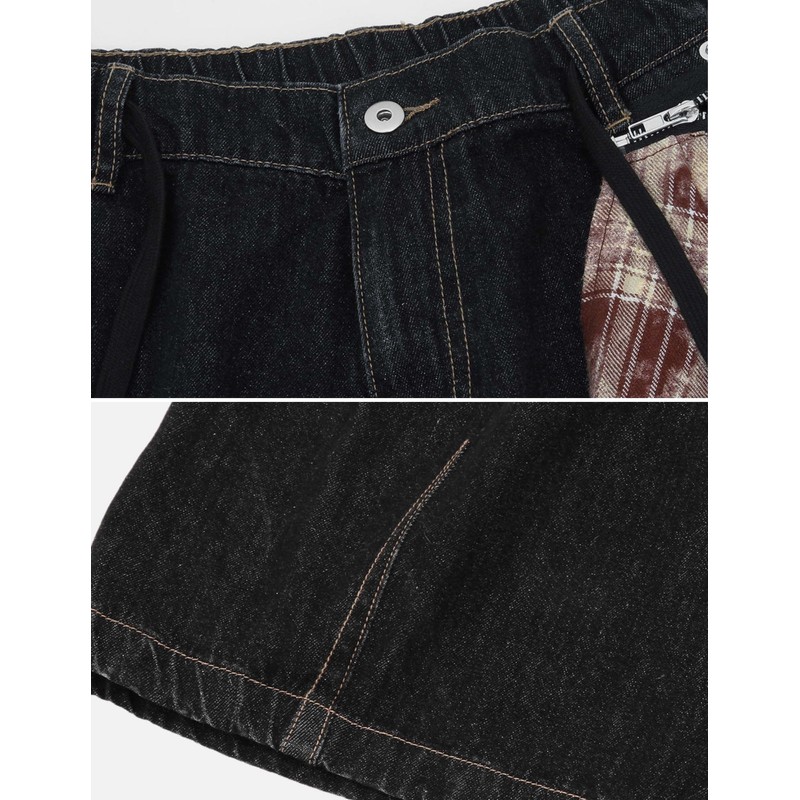 Aelfric Eden Detachable Kerchief Baggy Longline Jorts Casual Denim Shorts Y2K Streetwear Unisex Jean Shorts Black X-Large