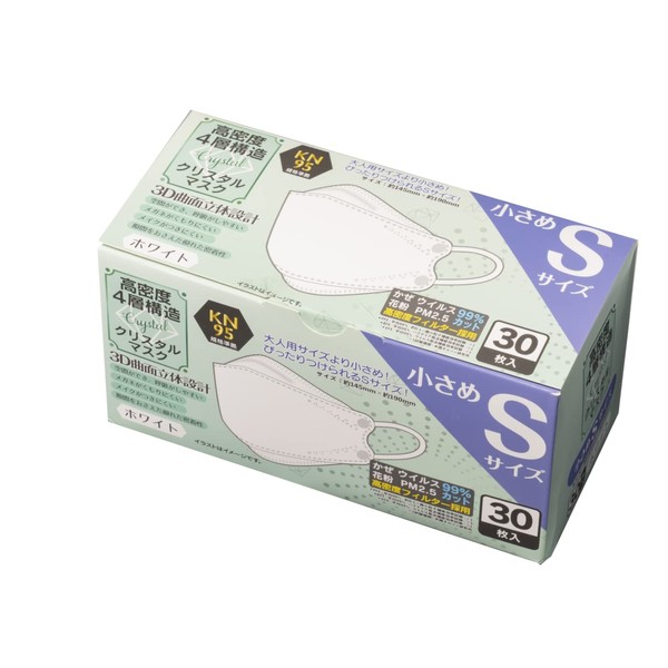 AENA 4-Layer K95 Disposable Masks, Non-woven, Pack of 30, Antibacterial, Breathable, Super Comfortable, Protects from Viruses, Airborne Droplets, Pollen, Somewhat Small, Size S, White