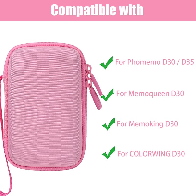 - The hard shell is suitable to replace the d30 label maker, and the interior is made of quality velvet. The soft interior structure ensures protection against the phomemo d30. This label printer case comes with a comfortable hand strap that's easy to grab when traveling or storing, and an internal mesh pocket that not only holds your label maker machine phomemo d30 in place, but also stores d30 label tape accessories.
