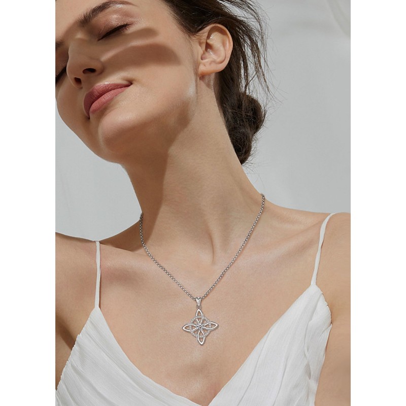 AEONSLOVE Witch Knot Necklace Women's 925 Silver Irish Celtic Knot Chain with Birthstone Witch Pendant Witch Knot Jewellery, Sterling Silver Cubic Zirconia