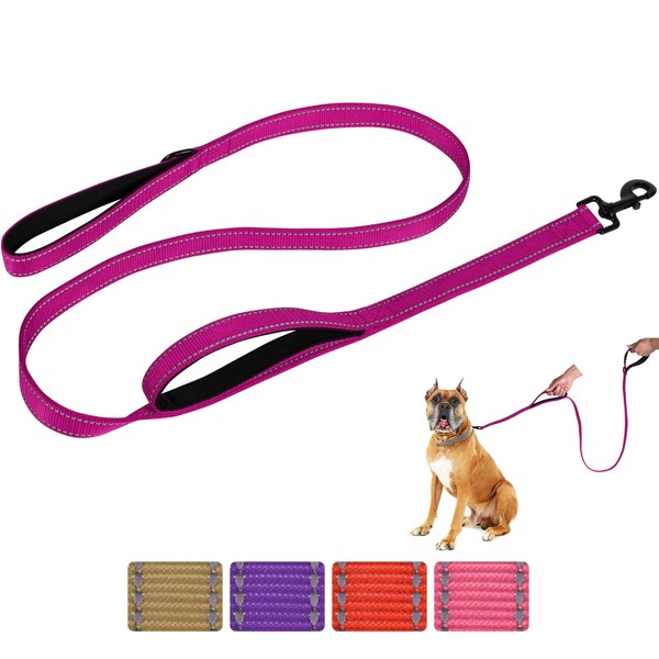 Aepeasti Dog Leash for Medium to Large Dogs with Two Padded Handles 5FT/6FT, Double Handle Dog Leash, Reflective Training Lead, Durable Traffic Leashes(5FT,Rose Red)