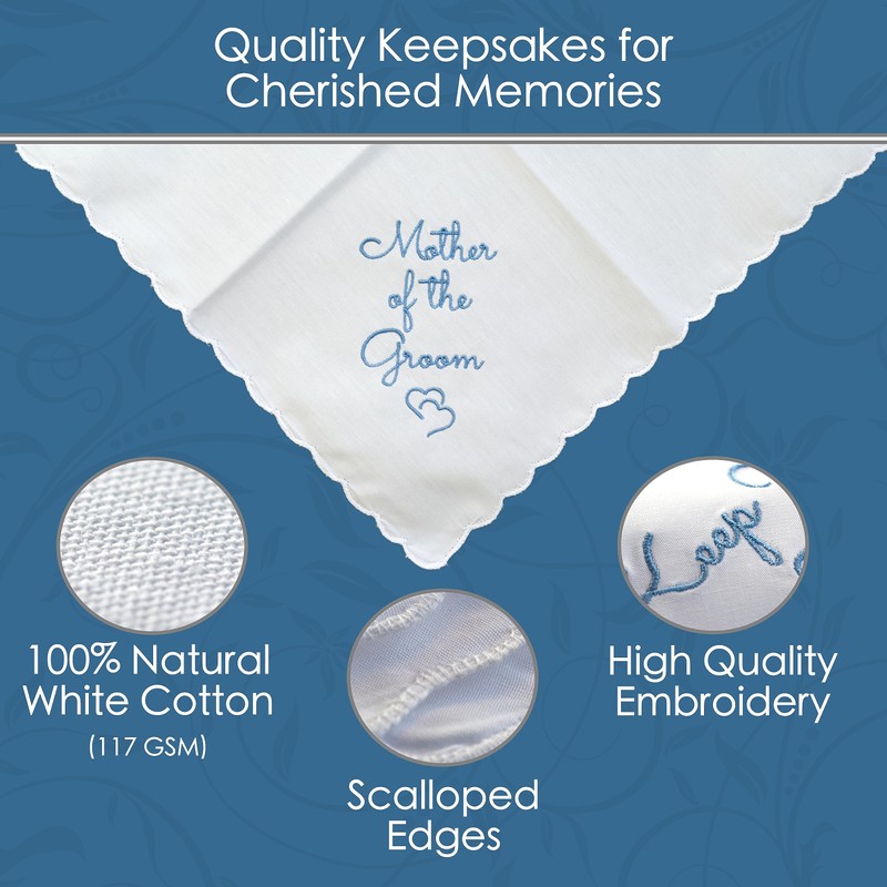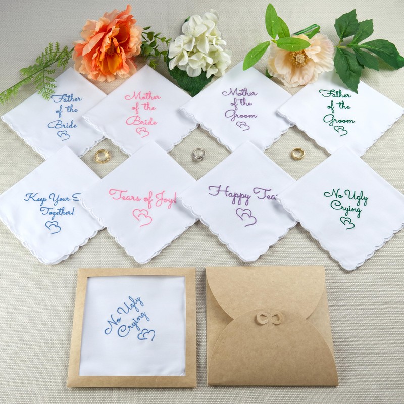 - Calidad prémium: hecho de 100% algodón con bordes festoneados, nuestro pañuelo de boda es suave y duradero. Es un recuerdo considerado y práctico que será apreciado durante años.