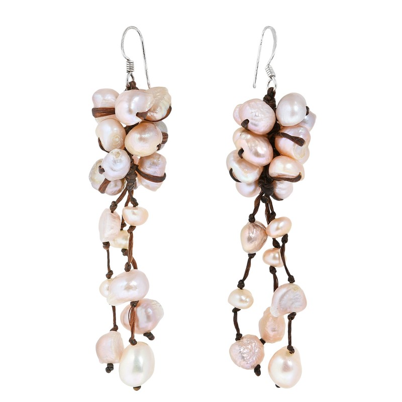 AeraVida Nature Inspired Hanging Cluster of Cultured Freshwater Pink Pearls and Rope Dangle Earrings | Pearl Earrings for Women