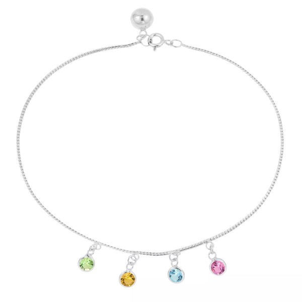 Aeravida Shimmering Round Colorful Cubic Zirconia Sterling Silver Bracelet or Anklet
