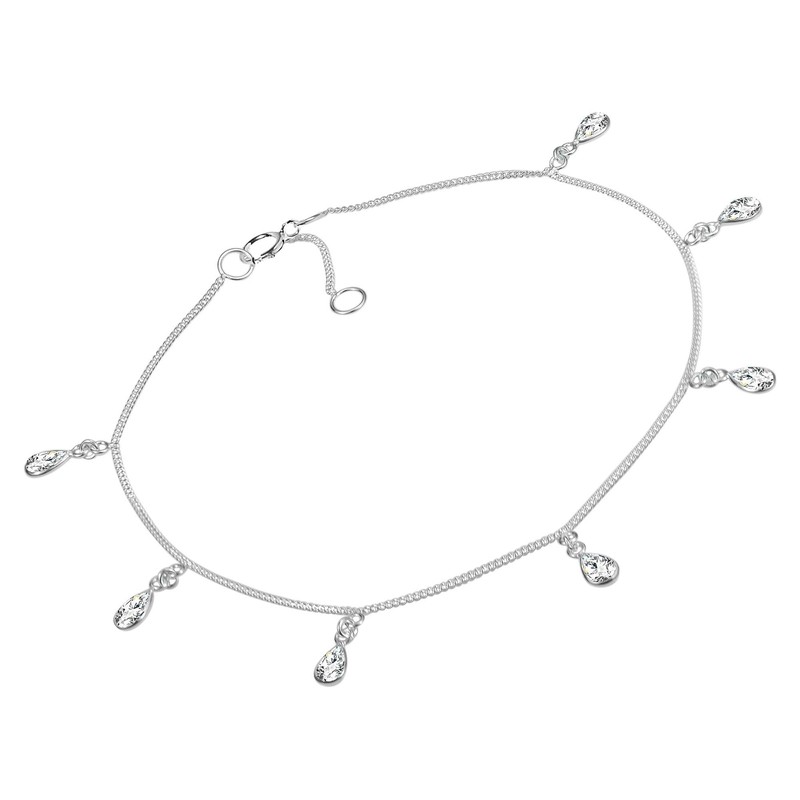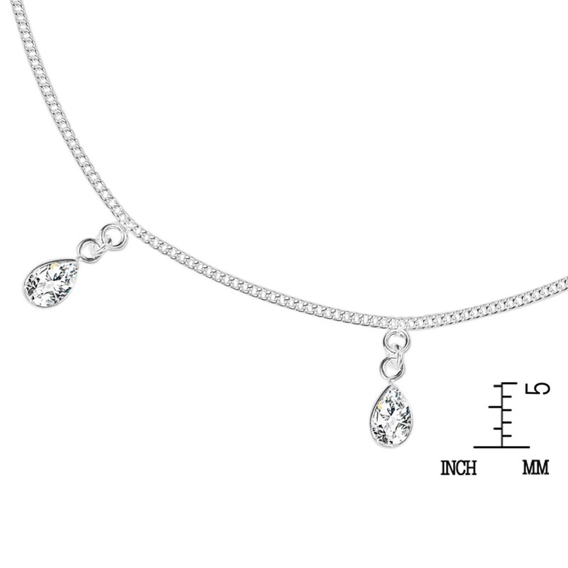 AeraVida White Teardrop CZ Dangle Sterling Silver Anklet with Adjustable Chain | Delicate Sparkling Cubic Zirconia Charms | Lightweight Shiny 925 Silver Daily Foot Jewelry for Women