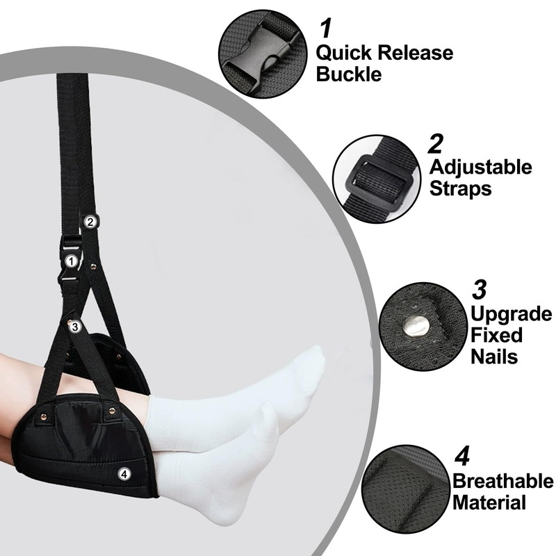 • High-quality travel gadget: This foot hammock airplane is made of high-quality and soft premium foam, which can significantly improve your travel experience. It is like sitting in a recliner chair and putting your feet on cushions. It consists of three nails and two straps that form a triangle, making it more stable and durable.
