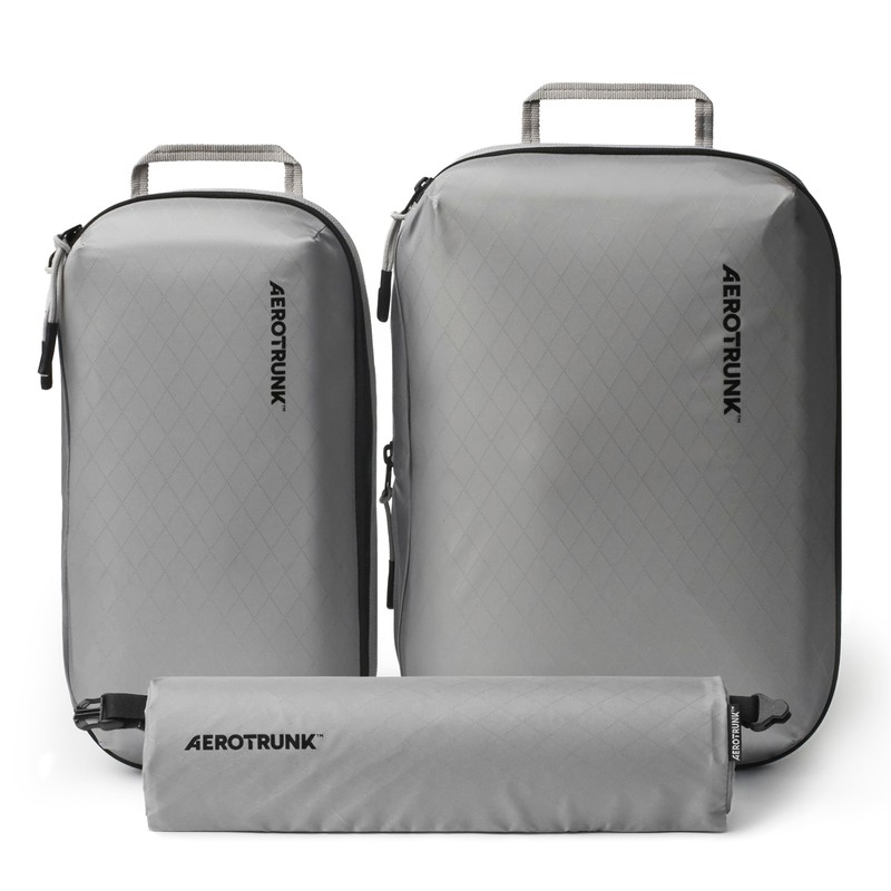 Aerotrunk Ultralight Compression Packing Cubes - Lightweight Travel Organizers for Suitcases and Luggage (3-Pack, Light Grey)