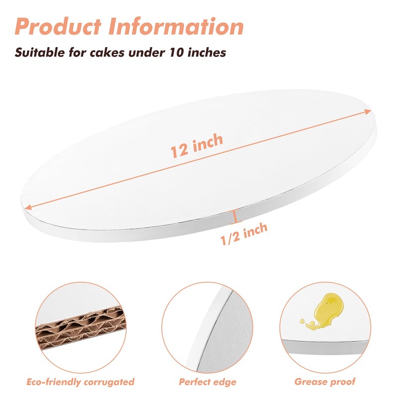 - Durable and Reliable: Made from four layers of sturdy, 1/2 thick corrugated cardboard, these cake drums are non-toxic and safe for all food items. They offer robust support for multi-layered cakes, preventing bending and maintaining the structural integrity of your desserts.