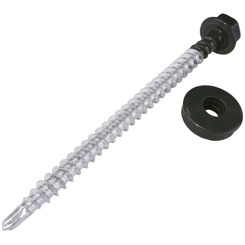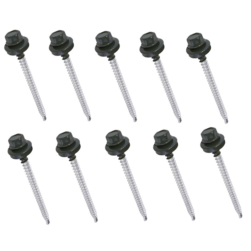 AERZETIX - C57208 - Set of 10 self-drilling screws metal on wood Ø4.8x70 mm + EPDM sealing washer - painted in anthracite grey RAL 7016 - head size 8 mm hexagon - made of steel
