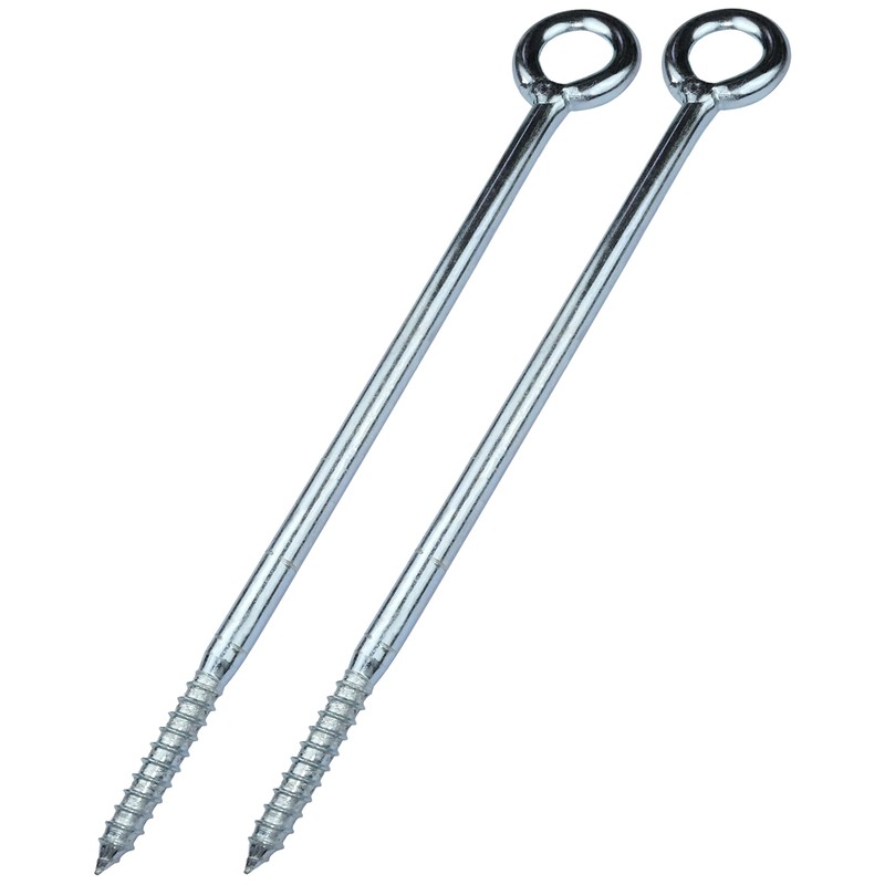 AERZETIX - C58291 - Set of 2 screw hooks eyelet ring diameter 12 x 300 mm for pipe frameworks - wood net - wall mounting - made of steel - colour silver