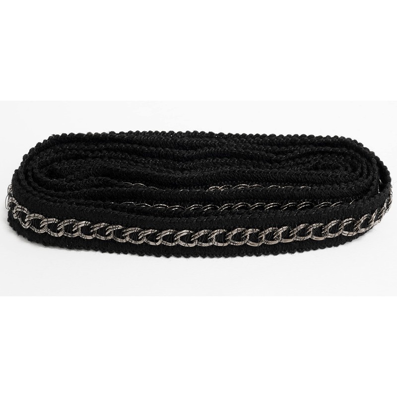 AERZETIX - C60659 - Border ribbon 2 m x 20 mm made of textile with metal motif - posament clothing haberdashery hobby decoration sewing - colour black and silver