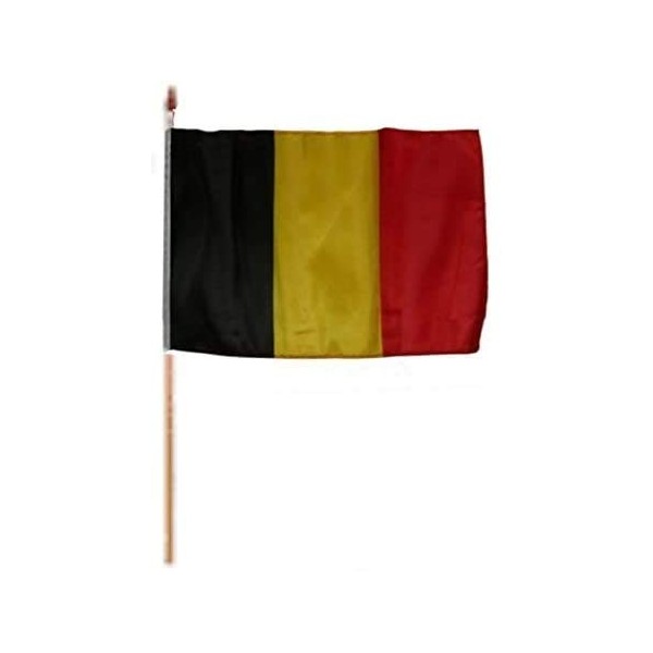 - 12x18 12"x18" Wholesale Lot of 3 Belgium Stick Flag wood staff Vivid Color and UV Fade Resistant Canvas Header and polyester material