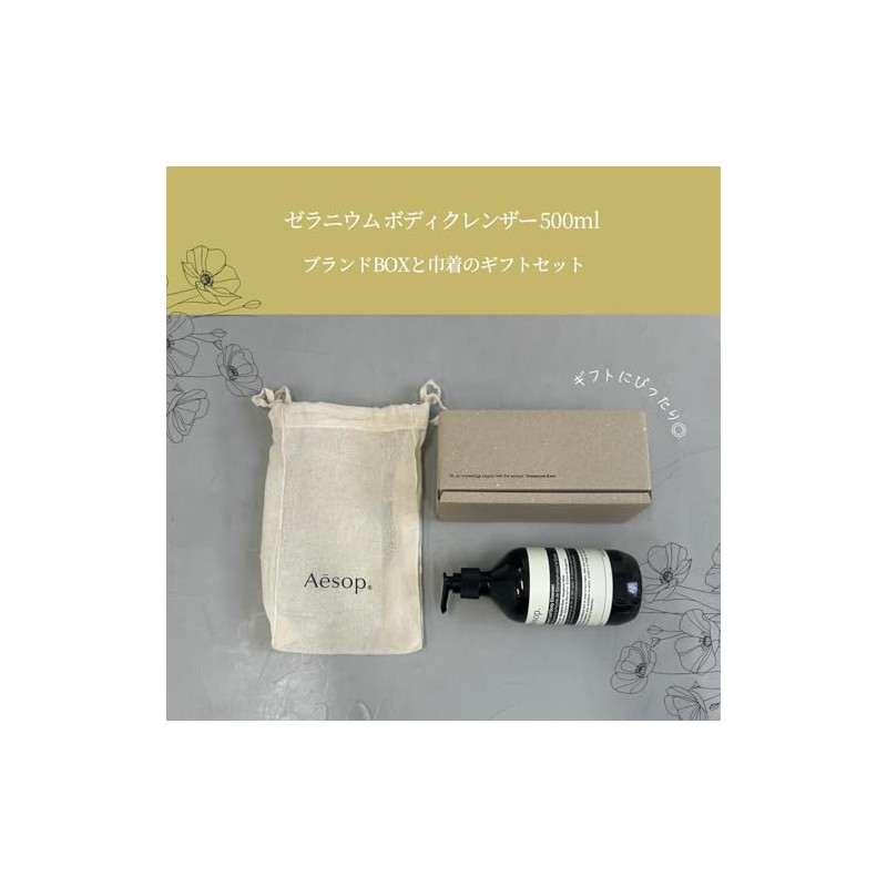 Aesop Geranium Body Cleanser, 16.9 fl oz (500 ml), Pump Type, Body Cleanser with Drawstring