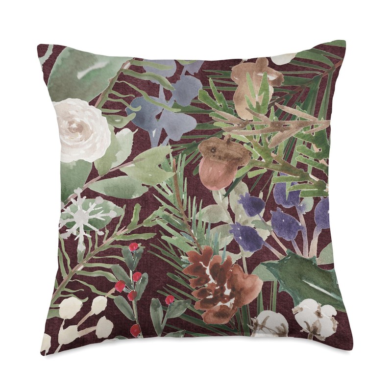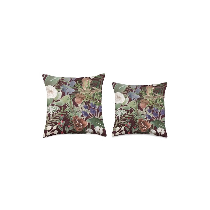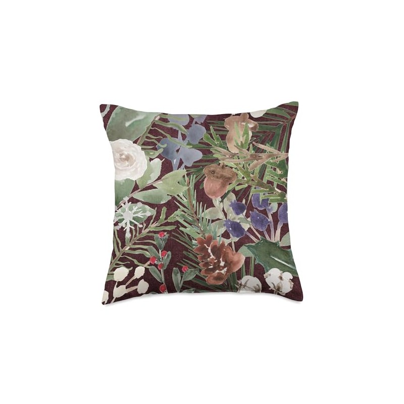 Aesthetic Christmas Pinecone And Winter Leaves With Pinetree Throw Pillow