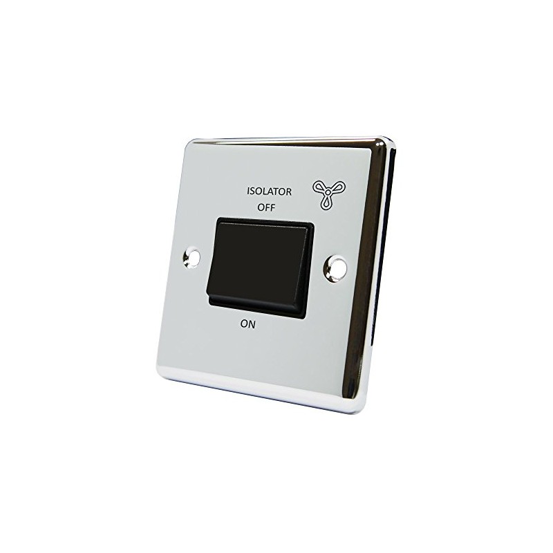 AET CPCFANBL Polished Chrome Classical Black Insert Plastic Rocker Switch-10 Amp 3-Pole Fan Isolator Switch, 240 V