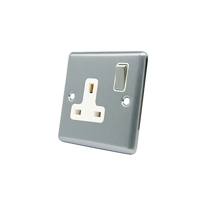 AET CSC1GSOCWS Satin Chrome Classical 1 Gang White Insert Metal Rocker Switch-13 Amp Single Plug Socket, 240 V