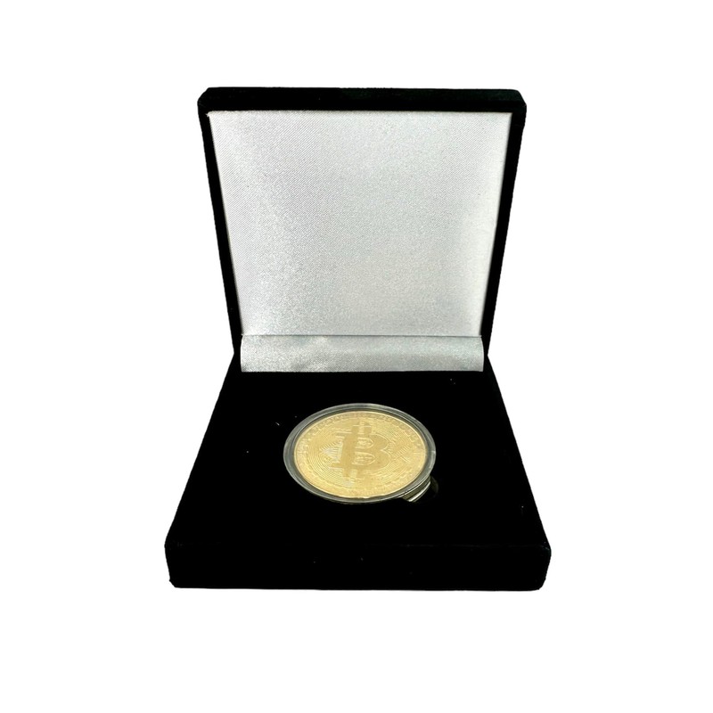 Aexus Bitcoin Coin in Luxury Velvet Gift Box | Display Case | BTC Crypto Coin | Commemorative Coin | Collectable Token