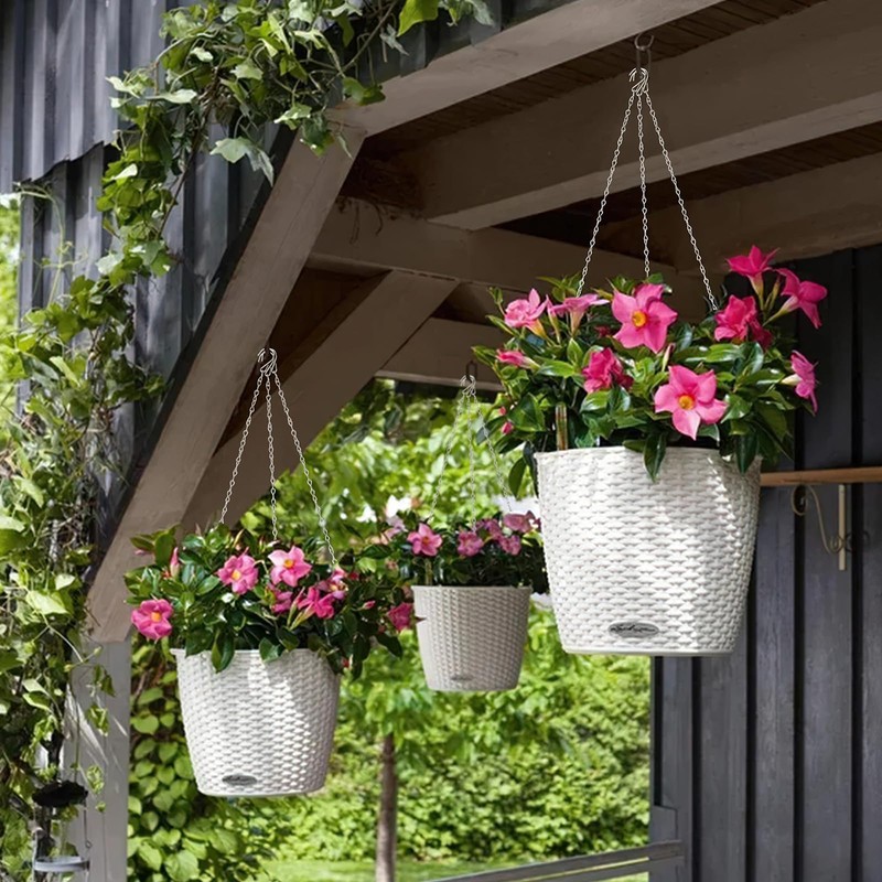 - 💐PACKAGE INCLUDES:The set contains 4pcs 9.5 inch/24cm metal hanging basket chains with hooks and clips for easy operation. Each chain has a maximum weight capacity of about 11lbs/5kg, which meets the weight requirement of most hanging items, whether it's a light wind chime or a slightly heavy plant basket, all can be hung safely.outdoor hanging rain chains,balcony planters for railing