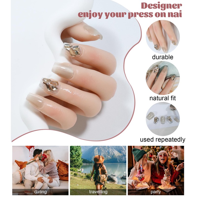 - Reusable to wear :AEZUNI trendy press on nails really suitable for holidays, weekend trips, weddings, parties, valentine's day, Christmas. Easy to put on and take off ,just soak in warm water for a few minutes, and use the tool to remove the nails .Put them in the box and can reusable to wear much times,and save your money. Make these as a beautiful gift for women and girls.