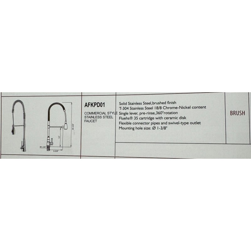 With a spout height of 13 inches and a single-hole installation, this faucet is ideal for any kitchen sink. The AFA Stainless Steel brand is known for its quality and this model, AFKPD01, is no exception. Upgrade your kitchen with this new faucet and experience the convenience and elegance it brings.