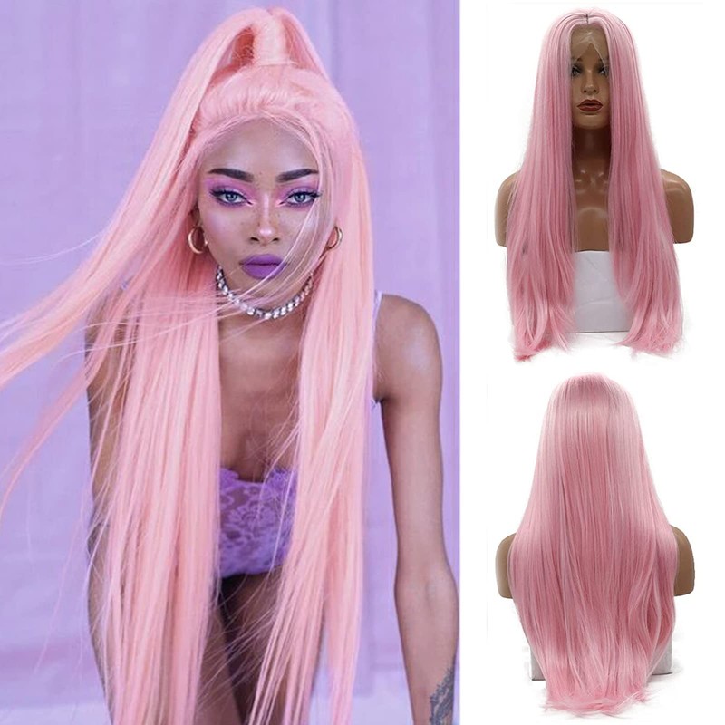 - 【PACKAGE】Gorgeous synthetic lace front wig with adjustable straps and combs on cap + free wig cap. (Hair Color: This pink synthetic hair wig is for women, which could achieve natural looking.) (Hair Length: The length for this long straight synthetic wig is in 24 inches, just like the picture.) (Hair Length same as Picture Natural Hairline And Hair Looking)