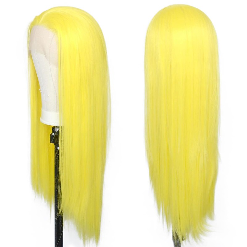 - 【Hair Feature】free part lace front wig,hd lace frontal wig,this glueless lace front synthetic wig with pre plucked natural hairline as same as yourself human hair, this yellow HD pre plucked synthetic wig can be styled however you want. long silky straight texture, half ponytails, double or half bun, bob haircut, ponytails, changeable shapes can be easily done. suitable for any occasion