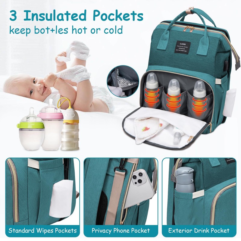 - 【Multi-Modal Carry】: Transition with ease from a sleek diaper backpack to a portable changing station or even to a snug baby crib. With stroller-compatible straps, this bag is the perfect companion for travel, shopping, or day-to-day errands, ensuring everything you need is accessible and secure.