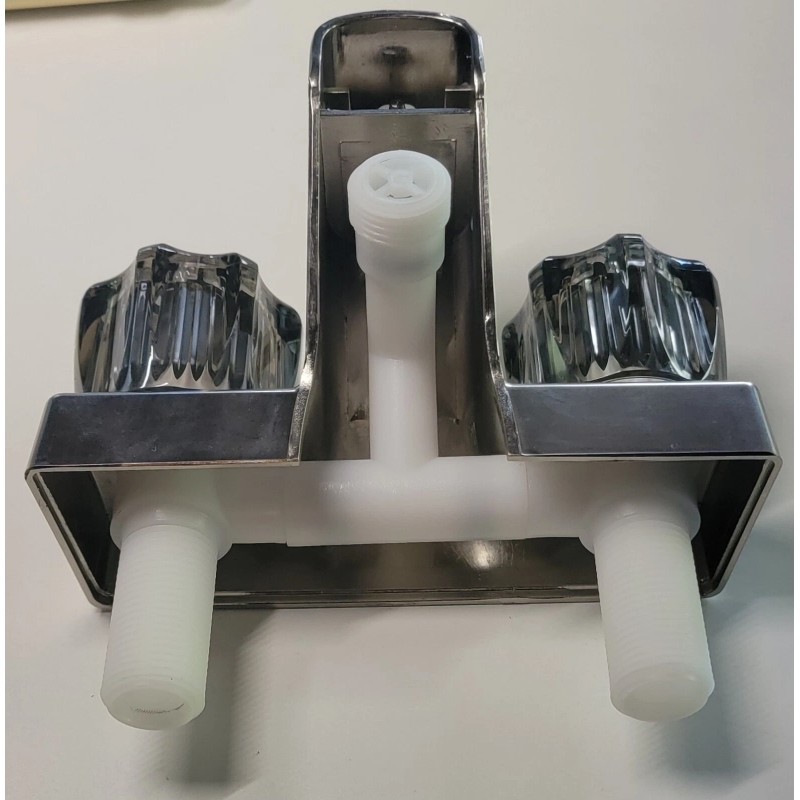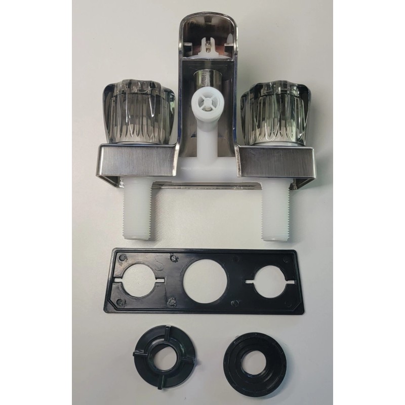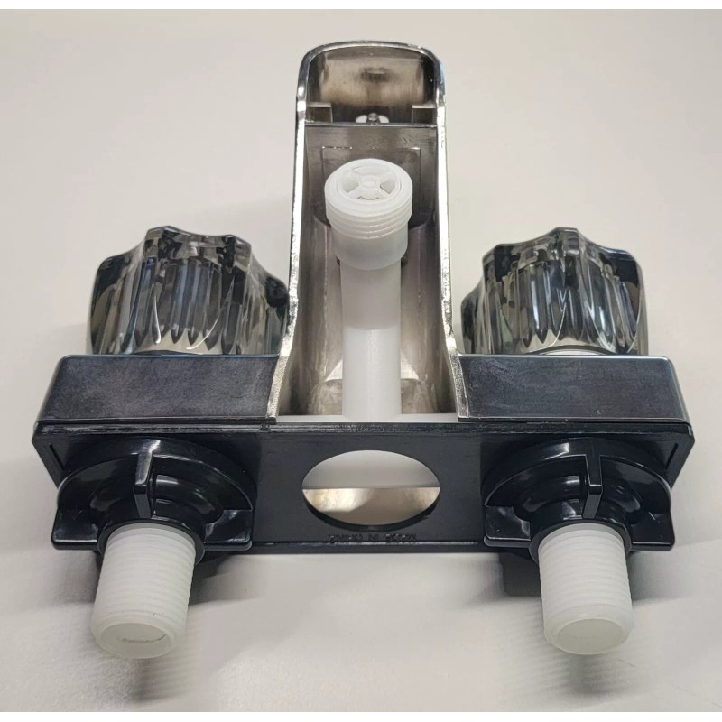 Afeel 4" RV Shower Faucet w/ Diverter Chrome 2x Round Smoked Handles Plastic