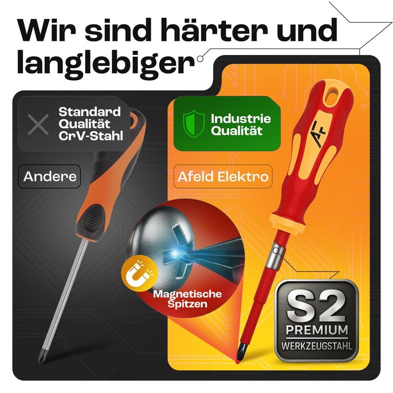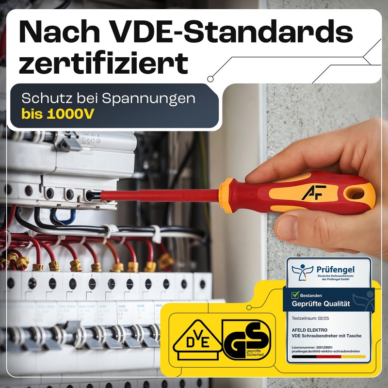Afeld Elektro VDE Magnetic Screwdriver Set - 6 Pieces - 2 Crosses - 4 Slotted - Insulated up to 1000 V - Made of S2 Steel in Industrial Quality