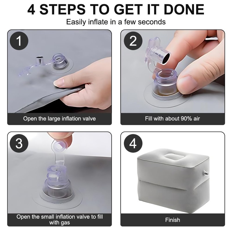 - Easy to use and carry: Our inflatable footrest cushion for travel can be quickly and easily inflated with your mouth or an air pump (not included). When not in use, the air can be deflated and the cushion can be folded to save space. It can be conveniently stored in the included carry bag. Our inflatable stool is ideal for travel or as a gift for relatives and friends
