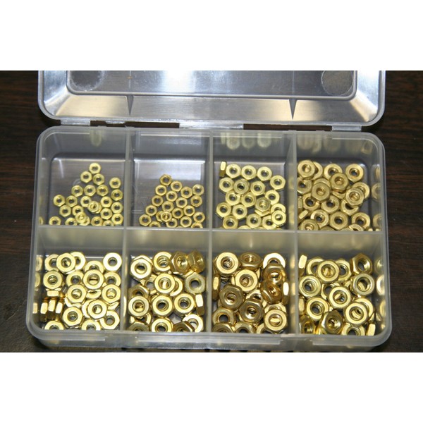 AFH 500 PIECES 2-56 THRU 10-32 JUMBO BRASS HEX MACHINE SCREW NUTS ASSORTMENT