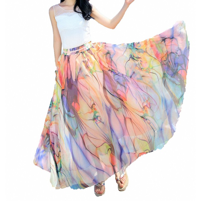 - Lightweight chiffon swing summer beach long skirt,It can be worn with tank tops, t-shirts, bikini, sandals, straw hat, flats, heels etc.