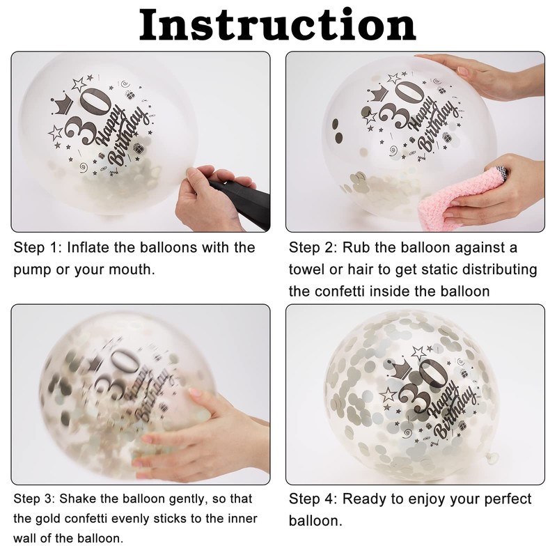 - The Confetti Balloons: The confetti balloons can be wiped with a dry towel or blanket to make the confetti stick to the inside of the balloon, Which makes the latex balloon very beautiful.