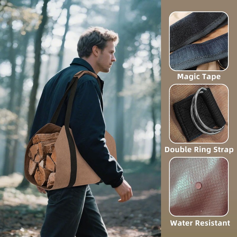 - Buckle Reinforcement Strap: This canvas firewood log carrier comes with an adjustable elastic strap that can be adjusted as needed to help secure and tighten items and prevent them from falling off
