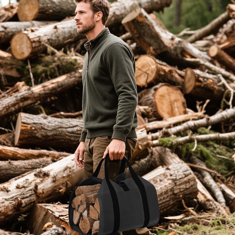 AfitLulu Large Canvas Log Carrier Bag for Wood, Indoor Firewood Carrier Bag Portable Extra Large Log Carrier Tote Bags Heavy Duty with Handles for Camping (Black)