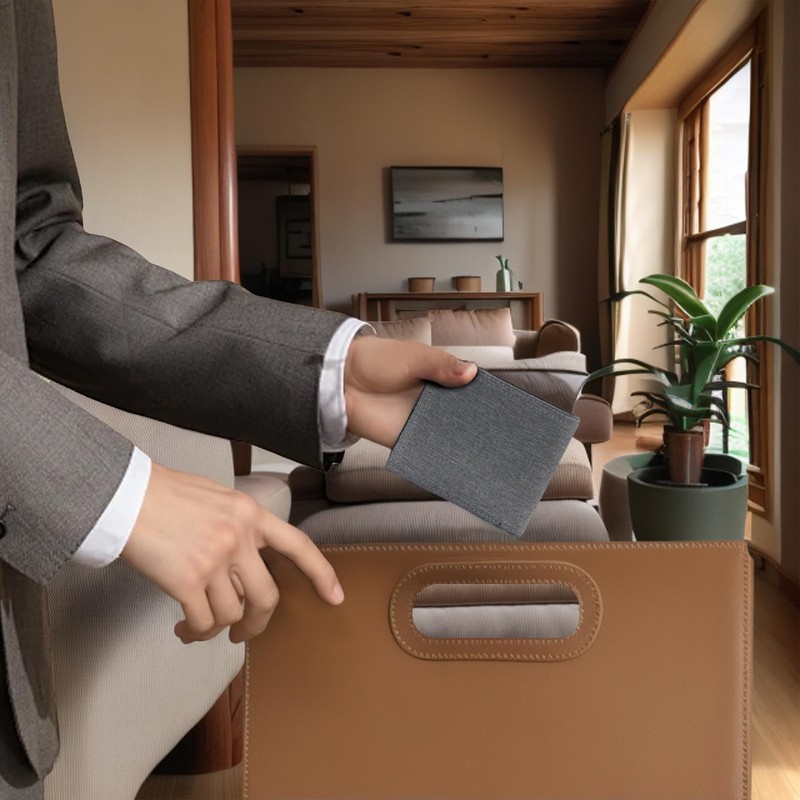 - Size: our men's wallet comes in two sizes. The folded size of the short men's wallets is 10.5 x 9 x 2.5 cm, and when unfolded, it is 21.5 x 9 x 1 cm. The long wallet is 18 x 9 x 2 cm and the unfolded after is 18 x 18 x 1 cm. The ultra-thin feature makes it portable and easy to put in a bag