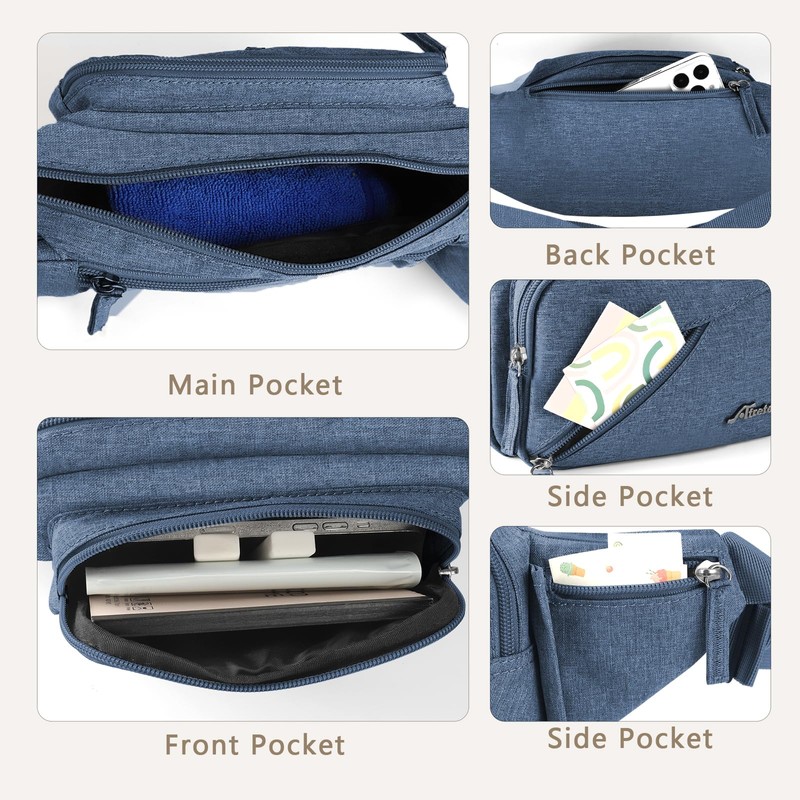 *Ample capacity: The waist travel pouch has 4 different main compartments, each of which can be closed with a zipper. The narrow compartment at the rear is ideal for mobile phones. Small zipper compartments on both sides of the waist bag pack for storing water bottle bags and small items.