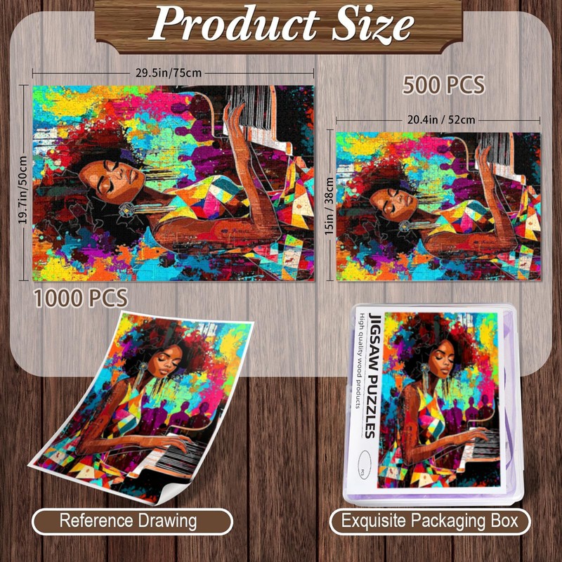 - High-Quality Puzzles: African American Puzzles For Adults, Black Women Jigsaw Puzzles 500 Pieces For Adults, Our 500-Piece Jigsaw Puzzle For Adults Are Made From High Quality Wooden,Ensuring Lasting Durability. Plastic Box Packaging, With A Reference Drawing (A5 Size). The Bright Colors Provide An Excellent Visual Experience During Assembly. Each Puzzle Is Carefully Polished For A Comfortable Feel And Tight Fit, Allowing You To Enjoy Both The Quality And The Fun Of The Puzzle.