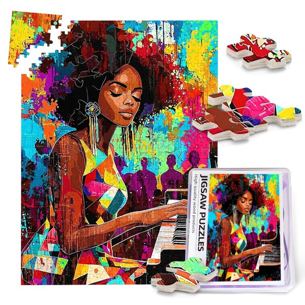 African American Jigsaw Puzzles for Adults 500 Pieces Black Women Jigsaw Puzzles African Women Wooden Puzzle Musical Performance Playing Piano Puzzle Fun Family Game Educational Intellectual