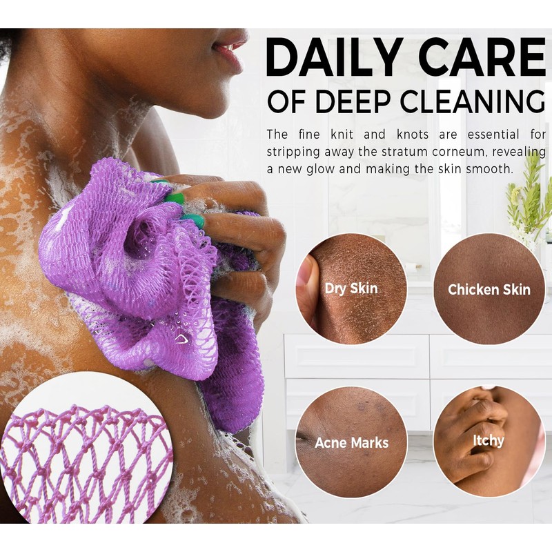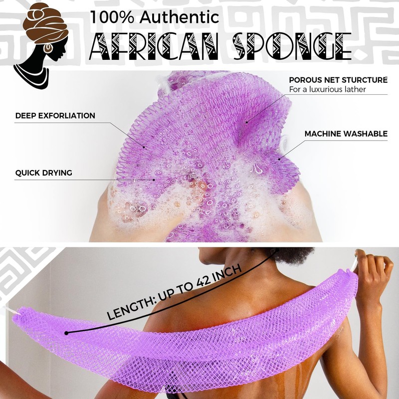- Authentic African Net Sponge: Crafted from skin-safe and eco-friendly nylon, this is the key to a Africa's skincare ritual. It has great elasticity that produces fine foam for a better bathing experience. The close-knit net makes the exfoliator smoother, transforming your daily shower into a soft and relaxing spa experience that washes away tiredness and troubles.