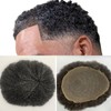 Afro Toupee for Black Men Human Hair Curly Toupee Full French Lace African American Wigs 8x10 All Transparent Lace Hairpiece Hair Replacement (6MM-1B50# Natural Black With 50% Gray)