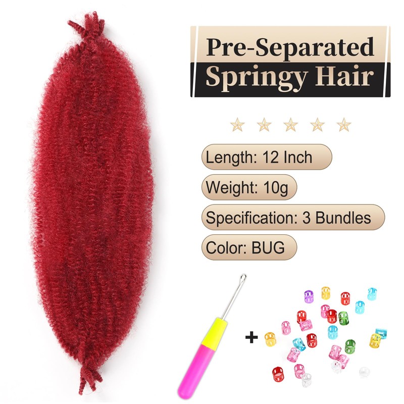 Afro Twist Hair 12 Inch 3 Packs, Springy Afro Twist Hair Pre Fluffed Spring Twist Hair Pre Stretched Wrapping Hair for Soft Locs Hair Extensions