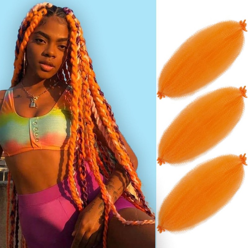 Afro Twist Hair Pre-Separated Springy Pre-Stretched Wrapping for Soft Locs Marley Braiding Extensions - Kinky (24 Inch, Pack of 3, Orange#)