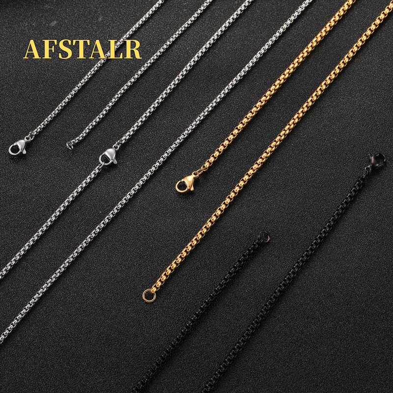 AFSTALR Men's Women's Stainless Steel Silver Chain Necklace Venetian Link Chain Link Necklace 2/2.5/3/4 mm 45/50/55/60/70 cm Box Chain for Men Jewellery Link Chain Silver/Gold/Black, Stainless Steel