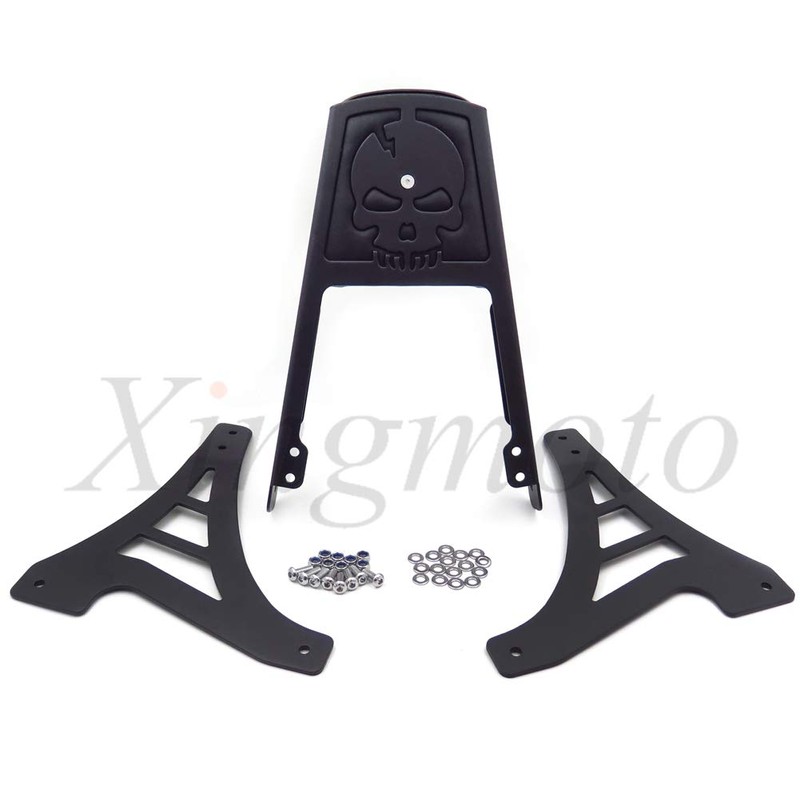 AfterMokit Replacement Backrest with Leather Pad for Harley Davidson Sportster 883 1200 1995-2008 Black Skull Sissy Bar