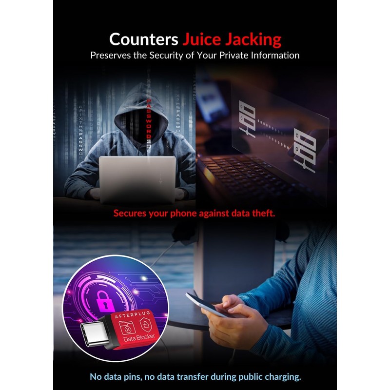 - Juice Jacking Shield: Our robust solution stands guard against data theft, ensuring your personal information remains secure from unauthorized access