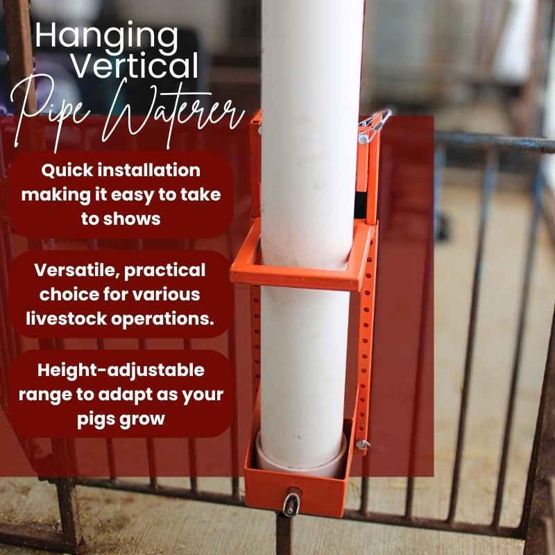 Ag-Rite Hanging Vertical Pipe Waterer for Livestock – Adjustable Height 33” to 20” | Secure Latching Mechanism | Durable, Easy-to-Install Waterer for Pigs & Other Livestock