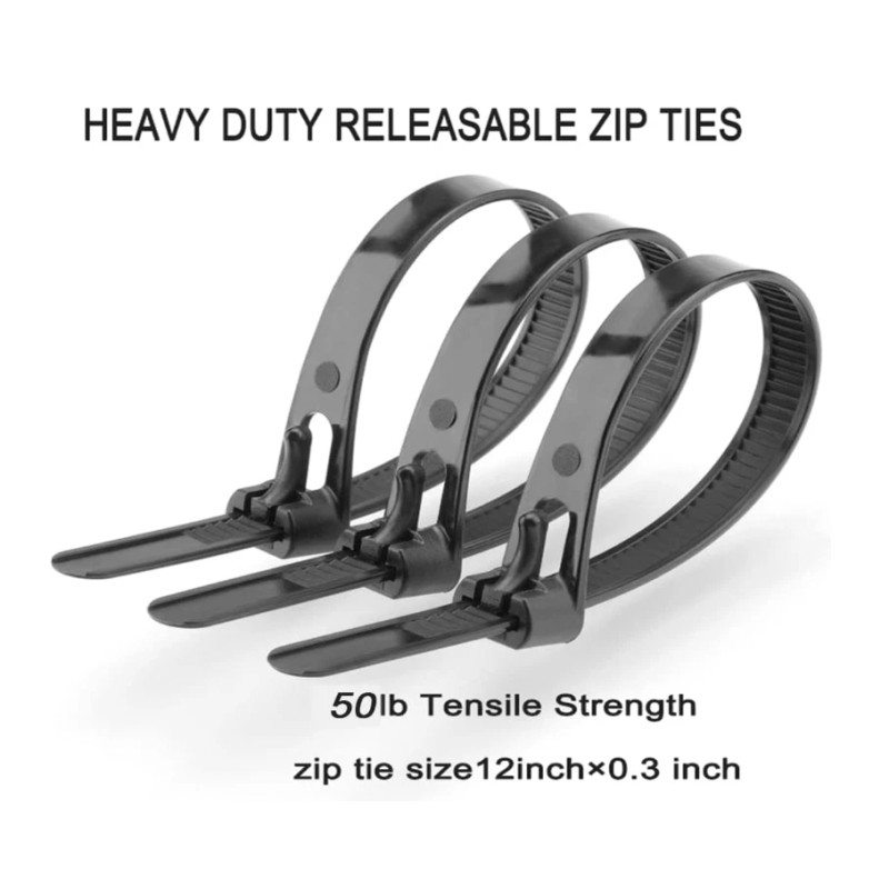 RELEASABLE CABLE TIES HEAVY DUTY-This is a kind of high quality releasable and adjustable zip ties ,The teeth engage as they should,strong releasable latch ensure zip ties reusable many times as well as adjustable the bundle size when you bundle wires too tightly,perfect stuff of cable management,It is popular ,How to untie the cable tie please see the detailed description picture and it can be reused, it is very environmentally friendly and economical, saving money。