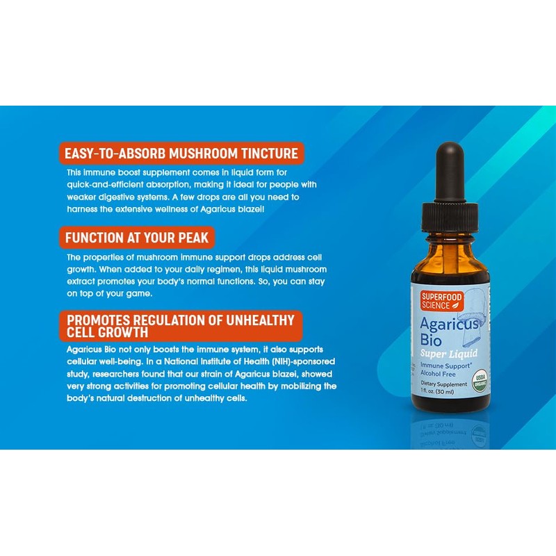 - Convenient Liquid Dosage: Say goodbye to cumbersome pills and powders! Our Agaricus Bio Super Liquid offers a user-friendly 1 fl oz (30 ml) liquid format, making daily supplementation a breeze. Now, you can enjoy easy and efficient intake without any hassle.